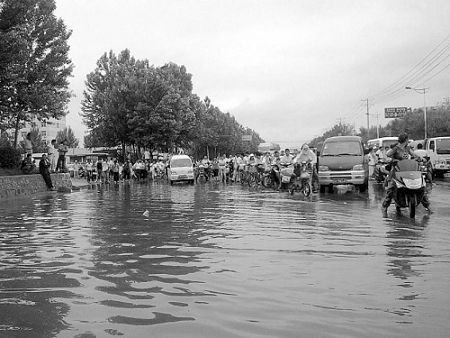 沈陽市排水處書記宋金城告訴記者, 最嚴(yán)重時,積水已經(jīng)齊腰深,而且形成了一個長300米、寬20多米的“湖泊”。因為水量較大,即便有車輛,也難以通行。