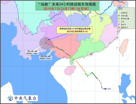 受“燦都”減弱后的低壓和西南季風(fēng)的共同影響,23日晚上到24日白天,北部灣、廣西沿海仍將有6-7級(jí)大風(fēng),陣風(fēng)可達(dá)8-9級(jí);廣東西南部、廣西中南部和西部、云南南部和西部、貴州西南部等地有大雨或暴雨,其中,廣西西南部和南部的部分地區(qū)有大暴雨,局地有特大暴雨。