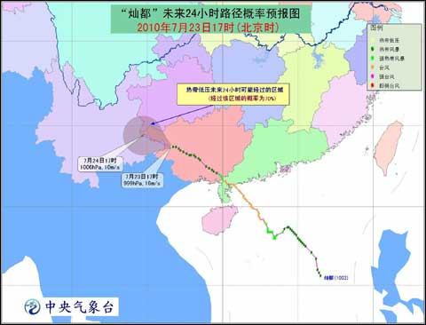 今年第3號熱帶風(fēng)暴“燦都”(CHANTHU)于7月23日傍晚在廣西西部減弱為熱帶低壓,23日20時中央氣象臺對其停止編報。