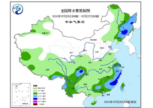 中新網7月26日電 據中央氣象臺預報,未來三天,四川盆地中部和南部、云南西北部、黑龍江東部和南部、吉林大部、遼寧東部、浙江東部、福建大部、臺灣大部、廣東大部等地先后有大雨或暴雨,局地有大暴雨;上述部分地區(qū)并伴有短時雷雨大風或冰雹等強對流天氣。