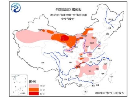 預(yù)計,明天白天,北京大部、天津西部、河北中西部和南部、山西大部、陜西東部及關(guān)中大部、寧夏西部、河南中西部、山東北部、湖北西部、四川盆地東北部、重慶大部、貴州東部、湖南大部、江西西部、浙江西南部等地有35℃以上的高溫天氣,局地最高氣溫可達37~38℃;內(nèi)蒙古中西部、甘肅中西部、新疆吐魯番盆地及南疆盆地大部等地將有35~37℃的高溫天氣,局部地區(qū)最高氣溫可達40℃以上。