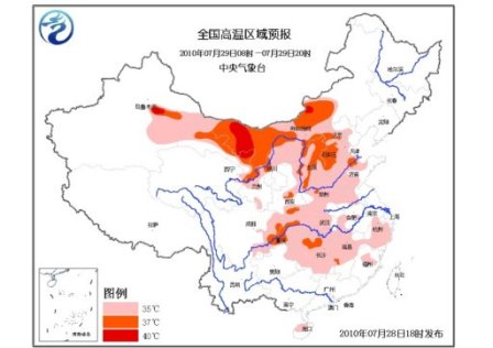 預(yù)計,明天白天,京津地區(qū)、河北大部、山西、陜西關(guān)中地區(qū)和東部、寧夏中北部、河南大部、山東中西部、安徽北部、湖北、四川盆地東部、重慶、貴州東北部、湖南大部、江西中北部、浙江大部、福建北部、海南北部等地有35℃以上的高溫天氣,局地最高氣溫可達37~38℃;內(nèi)蒙古中西部、甘肅大部、新疆吐魯番盆地及南疆盆地東部等地將有35~37℃的高溫天氣,局地最高氣溫可達40℃以上。