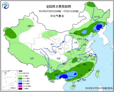7月30日08時至31日08時,新疆西部、西藏中南部、內(nèi)蒙古中東部、東北、華北北部、黃淮中南部、江淮、江漢大部、江南、華南以及川西高原南部、重慶東南部、云南、貴州等地有小到中雨或陣雨,其中,廣西大部、云南東南部、江西南部、福建西南部、遼寧、吉林中東部、黑龍江西北部及新疆天山西部等地有大雨,部分地區(qū)暴雨;上述地區(qū)局部并伴有短時雷雨大風(fēng)等強對流天氣。新疆北部和東部、甘肅西北部、內(nèi)蒙古東部、東北地區(qū)中北部等地有4~5級風(fēng)。東海大部、臺灣海峽、南海西北部和南部、北部灣有5~6級南到西南風(fēng)。