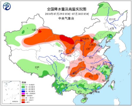 昨天,河北中部、山西、陜西北部、內(nèi)蒙古中西部、寧夏北部、甘肅中部、新疆東部及重慶出現(xiàn)37℃以上大范圍高溫天氣,其中內(nèi)蒙古西部和河北中部、山西東部局地達(dá)40~41℃,河北懷來(lái)41.7℃,山西靈丘41.5℃。此外,甘肅蘭州連續(xù)兩天氣溫超過(guò)39℃,28日達(dá)到39.8℃,為歷年同期最高氣溫值。