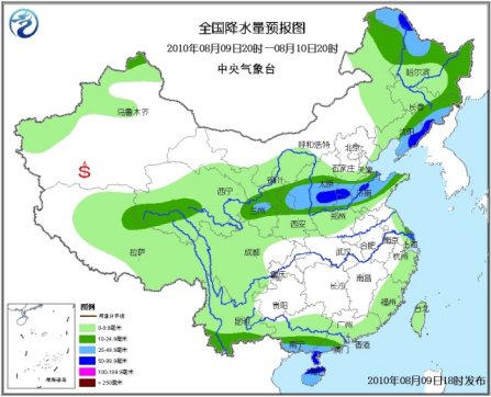9日夜間到10日,舟曲縣及白龍江流域上游陰有陣雨或雷陣雨,累積降雨量一般有5~15毫米。