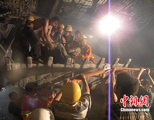 凌晨5時(shí)許,消防官兵抵達(dá)現(xiàn)場,發(fā)現(xiàn)隧道施工場地盡頭,幾塊巨大的山石垮塌,將支撐的橫梁壓彎變形,一工人因逃離不及時(shí),左腳被壓在橫梁與山石之間無法動彈,加之隧道通風(fēng)不好,山體還有繼續(xù)垮塌的可能,兩臺重型挖掘機(jī)因支撐山體產(chǎn)生的廢氣十分嗆人,對開展?fàn)I救十分不利。