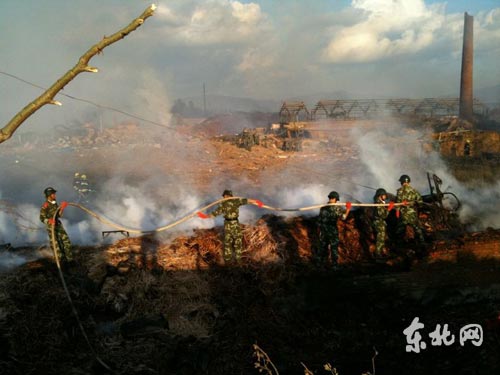記者17時(shí)10分許自雞西方向進(jìn)入伊春市區(qū),自入城口至事發(fā)現(xiàn)場(chǎng)一路已經(jīng)戒嚴(yán),事發(fā)現(xiàn)場(chǎng)位于河邊,消防隊(duì)員正在從河里取水撲火救援,目前仍有明火煙霧非常大,從很遠(yuǎn)處也可望見,地上有一層厚厚煙花碎屑。(記者 陳靜)