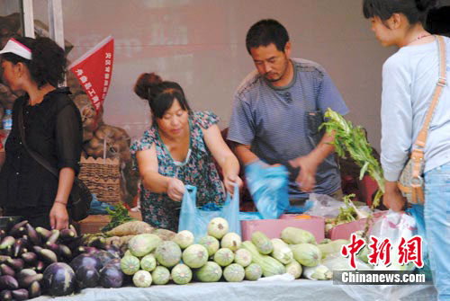 中新網舟曲8月20日電 (記者 侯志紅) “從14日下午開始我們我們已經有蔬菜上市了,但目前因道路受到限制,疏菜運輸還比較困難,因此, 疏菜成了舟曲居民的搶手貨!敝矍h政府附近一位菜灘的女老告訴記者。