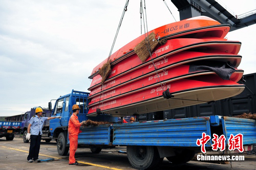 據(jù)了解,這批發(fā)往災(zāi)區(qū)的防汛物資包括沖鋒舟80艘、橡皮舟40只、船外機(jī)120臺、救生衣1萬件、鉛絲網(wǎng)兜4000個、查險燈500盞等,于8月19日通過鐵路開行“搶”17次專列發(fā)運(yùn)到成都東貨場進(jìn)行轉(zhuǎn)運(yùn)。