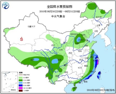 30日20時至31日20時,新疆南疆西部、西藏大部、青海東部和南部、西北地區(qū)中東部、內(nèi)蒙古中西部和東北部、黑龍江大部、遼寧西部、華北大部、黃淮東部、江淮東部、江南東部、華南東部和南部、四川大部、重慶西部、貴州西北部、云南大部等地有小到中雨或陣雨,其中,川西高原中部、山西東北部、江蘇東南部、上海、浙江中東部、福建東部沿海、廣東東部沿海、臺灣等地有大雨或暴雨;浙江東部的局部地區(qū)有大暴雨;上述部分地區(qū)并伴有短時雷雨大風等強對流天氣。新疆南疆盆地南部的部分地區(qū)有揚沙或浮塵天氣,新疆南部、內(nèi)蒙古東部、東北北部等地有4~5級風。受“獅子山”和第8號熱帶風暴的共同影響,東海南部海域、南海北部海域、臺灣海峽、臺灣以東洋面的風力將有6~8級,陣風可達9~10級,其中南海北部部分海域的風力將有9~11級,陣風可達11~12級。