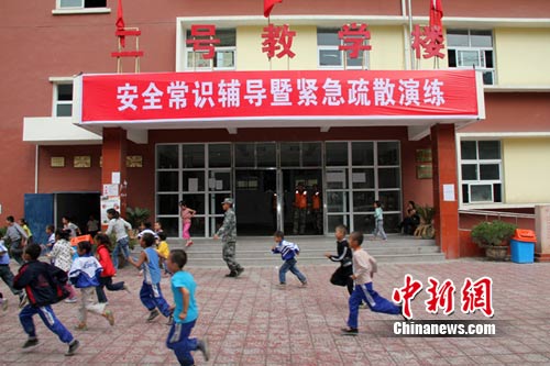 中新網(wǎng)舟曲9月1日電 (劉鵬)1日下午,是甘肅舟曲災(zāi)區(qū)新學(xué)期開學(xué)的日子,蘭州軍區(qū)某集團(tuán)軍舟橋團(tuán)的教官們采取理論輔導(dǎo)、觀看示意圖、動(dòng)作練習(xí)、模擬演練等方式,對(duì)舟曲城關(guān)小學(xué)600多師生展開了一場(chǎng)緊急避險(xiǎn)演練培訓(xùn)。演練培訓(xùn)包括火災(zāi)、洪災(zāi)、地震、泥石流等災(zāi)害發(fā)生時(shí)怎樣避險(xiǎn)、逃生等。