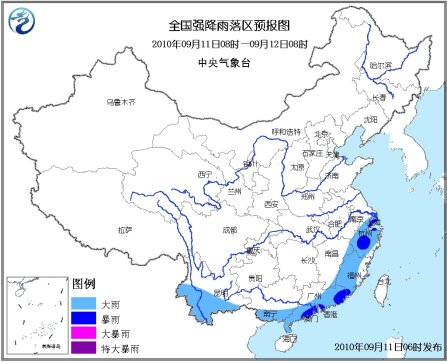 中新網(wǎng)9月11日電 據(jù)中央氣象臺(tái)網(wǎng)站消息,中央氣象臺(tái)9月11日06時(shí)繼續(xù)發(fā)布暴雨藍(lán)色預(yù)警:9月11日08時(shí)到12日08時(shí),江蘇東南部、上海、浙江大部、江西東北部和東南部、福建大部、廣東中南部和東部、廣西南部、云南南部等地有大雨或暴雨;上述地區(qū)局部并伴有短時(shí)雷雨大風(fēng)等強(qiáng)對(duì)流天氣。