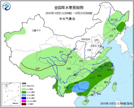 中新網(wǎng)10月11日電 據(jù)中央氣象臺預報,未來三天,新疆西部、西藏中東部、青海大部、內(nèi)蒙古東部、東北大部、川西高原北部等地有小到中雨(雪)或雨夾雪,西北地區(qū)東南部、黃淮南部、江淮、江漢、江南、華南、西南等地有小到中雨或陣雨,其中,貴州大部、廣西中北部、湖南北部、湖北南部、重慶東南部、浙江中北部等地有中到大雨,上述地區(qū)局部并伴有短時雷雨大風等強對流天氣。