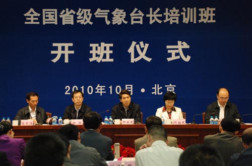 10月11日,全國省級氣象臺長培訓班在京正式開班。中國氣象局黨組書記、局長鄭國光,副局長矯梅燕出席開班儀式。鄭國光在開班儀式上強調,氣象臺長要結合實際、深入思考,擔負起領導新時期現(xiàn)代氣象預報預測業(yè)務和服務的重任。