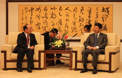 中新網(wǎng)10月12日電 據(jù)外交部網(wǎng)站消息,2010年10月12日,外交部副部長(zhǎng)宋濤禮節(jié)性會(huì)見朝鮮外務(wù)省領(lǐng)事局副局長(zhǎng)李浩榮率領(lǐng)的第11次中朝領(lǐng)事磋商朝方代表團(tuán)。