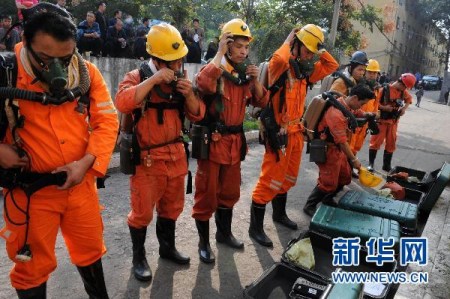 河南平禹煤電有限公司四礦并不寬敞的院子里,密密麻麻地停放著近百輛警車(chē)、救護(hù)車(chē)、救援車(chē)。30多名救護(hù)人員在井口整裝待命,隨時(shí)準(zhǔn)備替換井下正在超負(fù)荷工作的礦山救護(hù)隊(duì)員。他們6點(diǎn)多鐘就沖向事故現(xiàn)場(chǎng),至今仍在全力搜尋17名生死不明的礦工。