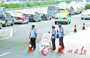 在9月份進行的第二次限行演練期間,環(huán)市路沿線因有一條車道被辟為亞運專用道而出現(xiàn)了較為嚴重的交通擁堵情況。為減少亞運期間該路段交通車流量,確保亞運道路交通順暢,最終的亞運限行方案特別針對環(huán)市路的上述情況,采取了8項補救措施,以解決環(huán)市路亞運專用車道對周邊道路的影響。