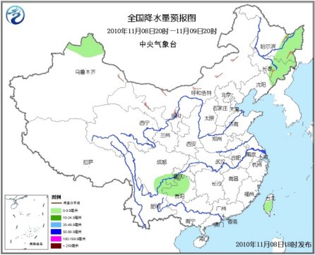 10日20時至11日20時,內(nèi)蒙古中東部、黑龍江南部、吉林、遼寧中北部等地有小到中雪或雨夾雪;河北北部、山西北部、四川東部和南部、重慶、貴州大部、云南中北部、湖北西部、湖南西北部及海南等地有小到中雨。西北地區(qū)中東部、內(nèi)蒙古大部、華北、東北、江淮、黃淮等地有4~6級風,局地陣風7~8級。南海東北部和中部海域?qū)⒂?~7級、陣風8級的東北風。