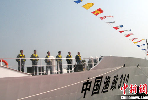 中國漁政310船入列后,即開始了它的首航。據(jù)透露,該船將開赴東海,前往釣魚島海域執(zhí)行護漁任務(wù)。