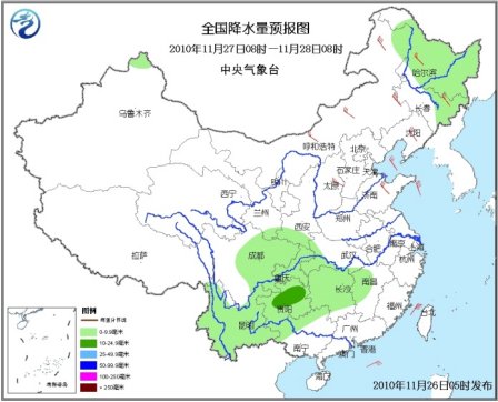 27日08時至28日08時,內(nèi)蒙古東北部、黑龍江大部、吉林東部等地有小到中雪(雨)或雨夾雪,其中黑龍江中東部的部分地區(qū)有大雪;西南地區(qū)大部、陜西南部、湖北西南部、湖南、江西西部、廣西北部等地有小雨或陣雨,貴州北部有中雨。內(nèi)蒙古中東部、華北東部、東北、黃淮東部等地有4~6級風。黃海中北部有6~7級、陣風8~9級的西北風;臺灣海峽、臺灣以東洋面和以南海域、南海大部有5~7級東北風。