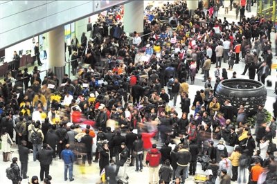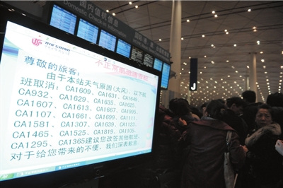 昨天下午,大量乘客滯留在候機(jī)廳內(nèi),延誤通知不斷重播,多數(shù)乘客表示不滿(mǎn)。乘客孫女士氣憤地說(shuō),他們一行20人從北京飛往上海,原定上午9點(diǎn)半起飛,已經(jīng)在此處等候了8個(gè)小時(shí),“剛一問(wèn),對(duì)方說(shuō)可能要明天起飛”,此話(huà)引起眾人不滿(mǎn),多人要求機(jī)場(chǎng)方解決食宿問(wèn)題,但對(duì)方始終稱(chēng)“需要協(xié)調(diào)”。