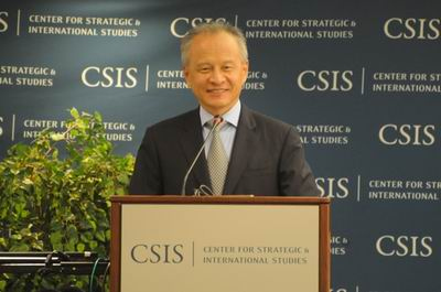 中新網(wǎng)5月25日電 據(jù)外交部網(wǎng)站消息,2013年5月22日,駐美國(guó)大使崔天凱出席美國(guó)戰(zhàn)略與國(guó)際問(wèn)題研究中心舉辦的“未來(lái)十年的中美經(jīng)貿(mào)關(guān)系:邁向更加合作與雙贏之路”研究報(bào)告發(fā)布儀式午餐會(huì)并發(fā)表主旨演講。崔天凱指出,中美構(gòu)建新型大國(guó)關(guān)系并非從零開(kāi)始,可以說(shuō),中美新型大國(guó)關(guān)系的基本框架已在逐步成形。