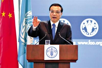 15日,李克強(qiáng)總理首次訪問糧農(nóng)組織總部并發(fā)表演講。