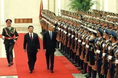 習(xí)近平主席在人民大會(huì)堂為奧巴馬舉行歡迎儀式。新華社發(fā)