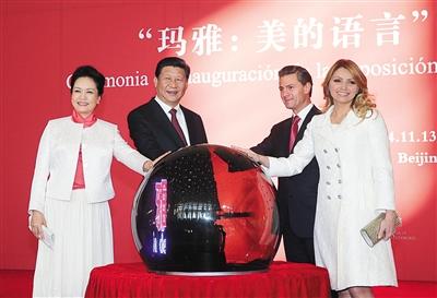 據(jù)新華社電 習(xí)近平13日同培尼亞共同出席在國家博物館舉行的“瑪雅:美的語言”文化展開幕式。