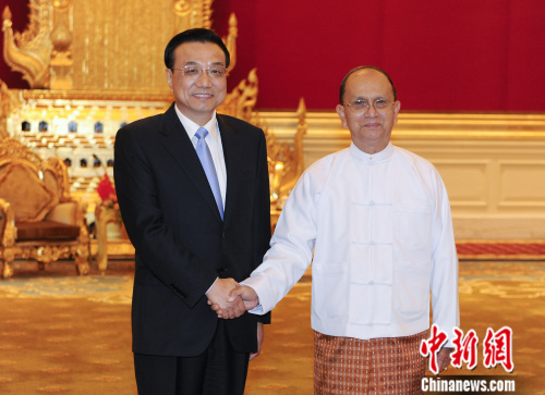 中新網(wǎng)內(nèi)比都11月14日電 (記者 郭金超)李克強(qiáng)總理14日在內(nèi)比都與緬甸總統(tǒng)吳登盛會(huì)談時(shí)說,中緬“胞波”情誼深厚,愿中緬永做好鄰居、好朋友、好伙伴,中國政府支持中國企業(yè)參與緬基礎(chǔ)設(shè)施建設(shè),使更多當(dāng)?shù)孛癖娛芤妗?huì)談后,兩國領(lǐng)導(dǎo)人見證了經(jīng)貿(mào)、農(nóng)業(yè)、金融、能源等領(lǐng)域合作文件的簽署。