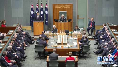 11月17日,國家主席習近平在澳大利亞聯(lián)邦議會發(fā)表題為《攜手追尋中澳發(fā)展夢想-并肩實現(xiàn)地區(qū)繁榮穩(wěn)定》的重要演講。新華社記者謝環(huán)馳攝