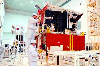 中新網(wǎng)12月23日電 據(jù)中國航天報報道,備受矚目的中國探月衛(wèi)星"嫦娥一號"在順利完成大型熱試驗后,即將進行出廠前的可靠性試驗工作。(陳國英)