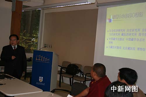 與加拿大的大學和研究機構(gòu)進行學術(shù)交流是代表團此行的主要目的。今天上午,代表團來到位于溫哥華的不列顛哥倫比亞大學,與該校亞洲研究院從事藏學研究的教授和博士、碩士研究生進行學術(shù)座談。代表團成員逐一介紹了所在機構(gòu)的情況以及各自研究的領域。