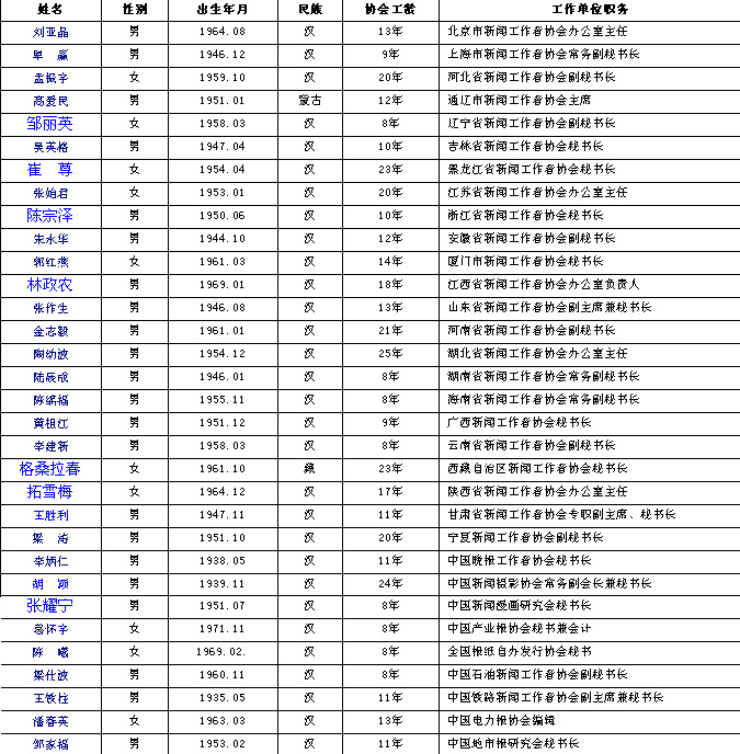 全國優(yōu)秀記協(xié)工作者名錄