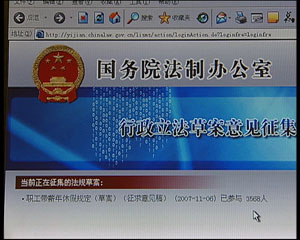 今天距離國務院法制辦《職工帶薪年休假規(guī)定(草案)》的征求意見稿發(fā)布,已經(jīng)過去了三天,那么最新的回饋如何呢?記者登陸了國務院法制辦的網(wǎng)站,發(fā)現(xiàn)短短三天,參與發(fā)表意見的人數(shù)超過了3600人,法制辦的工作人員告訴記者,同期在網(wǎng)上征求意見的法規(guī)草案還有一些,但是對這些草案參與發(fā)表意見的人數(shù)并不多,最多的195人,最少的只有18人?梢,相比之下帶薪休假草案本身的關注度遠比其他法規(guī)草案高出很多。