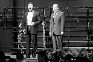 除了李叔同,李嵐清尊敬的中國音樂家還有小提琴家馬思聰和二胡演奏家華彥鈞,《思鄉(xiāng)曲》和《二泉映月》是兩人各自的代表作。在講座現(xiàn)場,李嵐清還與男中音歌唱家張峰一同深情演唱了由劉半農(nóng)作詞、趙元任作曲的《教我如何不想他》。“有人把音樂看作技巧,而不是審美的樂趣,所以他們聽不懂。其實,聽不懂是因為他們聽少了,現(xiàn)在很多演奏家都用通俗的方式來演繹經(jīng)典———‘鋼琴王子’克萊德曼的《致愛麗絲》其實是貝多芬的作品,S.H.E的《不想長大》用了莫扎特《第四十交響曲》中的旋律。我不是說古典作品不能被借用,但是對經(jīng)典音樂的惡搞是極不妥當(dāng)?shù)摹V袊魳芳乙矛F(xiàn)代人聽得懂的語言,用傳統(tǒng)的中國文化來寫音樂,譚盾、葉小綱做的就是這樣的事情……不能隨意讓經(jīng)典音樂PK通俗音樂!