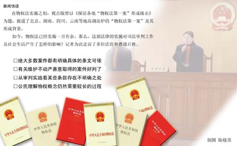 到今天為止,物權(quán)法已經(jīng)實施一月余。一個多月來,物權(quán)法對司法審判及社會生活有哪些影響?記者對此進行了深入采訪。