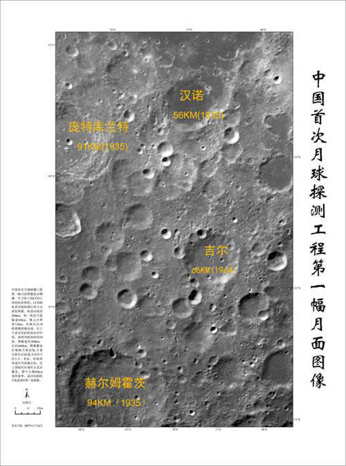如果要獲取全月面的二維平面圖,則需利用激光高度計的探測數(shù)據(jù)來補充和融合,這樣,首幅全月面二維平面圖最早可望在2008年12月制作出來。同樣,首幅全月面三維立體圖的制造則需更長的時間。