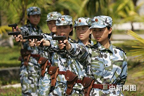初冬,祖國(guó)美麗的寶島西沙群島依然烈日炎炎,強(qiáng)烈的陽(yáng)光照在銀色沙灘上反射出刺眼的光芒。只見(jiàn)海軍西沙某部綜合訓(xùn)練場(chǎng)上,一名身著海洋迷彩的嬌小女兵快步走到輕武器射擊地線,伴隨著指揮員一聲令下,“嗖”地從腰間拔出手槍,左右開(kāi)弓,“啪啪”一陣槍響后,正前方50米開(kāi)外的10面靶牌應(yīng)聲倒地。這位槍槍中的,彈無(wú)虛發(fā)的雙槍神射手就是西沙某部女兵班班長(zhǎng)黃沛純,也是目前在西沙小島上工作時(shí)間最長(zhǎng)的女性。她也創(chuàng)造了西沙女兵手槍射擊的最高記錄,左手48環(huán),右手49環(huán)。日前,一位視察西沙部隊(duì)的首長(zhǎng)看了她的射擊表演后,激動(dòng)地說(shuō):“這個(gè)女兵可真不一般!”