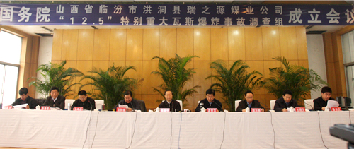 國家安全生產(chǎn)監(jiān)督管理總局局長李毅中任國務(wù)院山西臨汾洪洞“12.5”特別重大瓦斯爆炸事故調(diào)查領(lǐng)導(dǎo)小組組長。山西省代省長孟學(xué)農(nóng),國家安全監(jiān)管總局黨組成員、國家煤礦安全監(jiān)察局局長趙鐵錘,監(jiān)察部副部長屈萬祥,國土資源部黨組成員王瑞生,全國總工會書記處書記、紀(jì)檢組長張鳴起,山西省副省長靳善忠,國家煤礦安全監(jiān)察局副局長付建華任副組長。