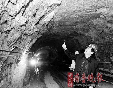 雖然100多米的斜洞坡度很緩,但一路走下來,腳下又濕又滑,難免有些費(fèi)時費(fèi)力。在進(jìn)入平洞后,記者突然眼前一亮。傅總工停下說,斜洞和平洞交接的這個地方,也就是地面上陸地和黃河接界的地方。也就是說,現(xiàn)在我們已經(jīng)到了黃河河床的正下方,我們頭上的70米之處,就是滾滾而過的黃河水了。
