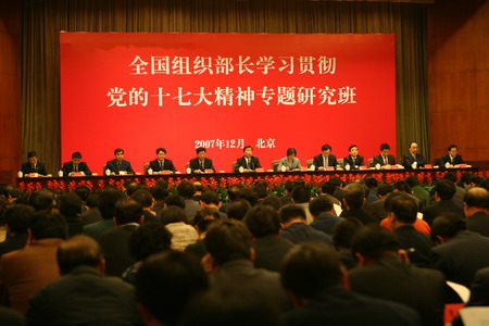 中新網(wǎng)12月14日電 據(jù)中國人事報報道,中國全國組織部長學(xué)習(xí)貫徹黨的十七大精神研究班12月9日至11日在京舉行。中共中央政治局委員、書記處書記、中央組織部部長李源潮與全體研究班學(xué)員座談交流并發(fā)表講話強調(diào),組織系統(tǒng)要深入學(xué)習(xí)十七大提出的新思想,落實十七大提出的新舉措,樹立十七大要求的新形象,努力做學(xué)習(xí)貫徹十七大精神的模范。