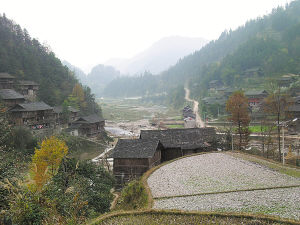 這個村幾乎所有人都還住著木頭吊腳樓。他們從山上砍取杉木,涂上桐油,搭建起這種傳統(tǒng)房屋。即使到2005年,村里還有6戶人家屋頂蓋的不是瓦片,而是長滿青苔的杉樹皮。這些因風(fēng)吹雨打而變成黑色的吊腳樓里,總共只有60臺彩電,16部電話,20部手機(jī),5臺洗衣機(jī)。