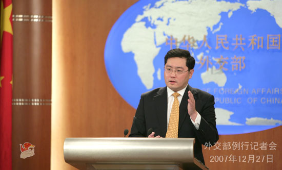 秦剛:歡迎大家出席2007年最后一場(chǎng)外交部例行記者會(huì),現(xiàn)在我愿意回答大家的提問(wèn)。