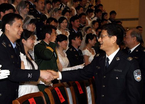 孟建柱會(huì)見參加公安部春晚集體婚禮的100對(duì)新人