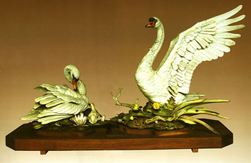 唐龍彬:擺在面前的這一對天鵝禮品叫瓷塑大天鵝,這是美國前總統(tǒng)尼克松在1972年2月21號來訪贈送給毛澤東主席的一個國禮?赡艽蠹叶剂私,當(dāng)時美國總統(tǒng)來中國訪問,這個事情本身就是一件舉世矚目的大事,因此當(dāng)時中國也好,美國也好都非常重視這一次尼克松來華訪問,而且把這次訪問看作終端中美兩國友好交往,重新打開這個大門的一個重要事情來看,所以當(dāng)時雙方政府都做了充分準(zhǔn)備。當(dāng)然首先是在政治上的準(zhǔn)備, 其中雙方交換的國禮也是非常重視的。當(dāng)時我是外交部禮賓司接待處處長,從頭到尾都參與了這項接待和籌備工作,也包括在籌備國禮方面也參與了一些具體工作。當(dāng)時美方是非常重視,尼克松本人親自抓美方贈送給毛澤東主席的國禮的選擇。