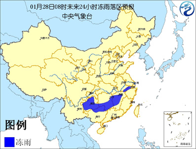 另外,貴州大部、湖南南部、江西中北部、廣西北部、安徽南部、浙江西北部等地的部分地區(qū)有凍雨。