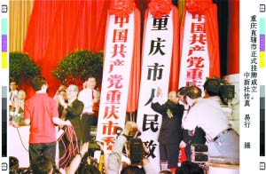 當(dāng)時沒有媒體直播這個場景,但喜訊立刻通過手機傳到重慶,電話那端響起鞭炮聲。重慶街頭很快掛出標(biāo)語:“我們直轄了!”