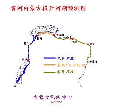 根據(jù)未來5天黃河內(nèi)蒙古段沿線天氣預(yù)報(bào),3月20日—21日氣溫略有回升, 3月22日 —23日,將有一次大風(fēng)、沙塵及降溫天氣過程,氣溫下降6~8℃。受氣溫變化的影響,未來5天巴彥淖爾市臨河至烏拉特前旗段將逐步開河。