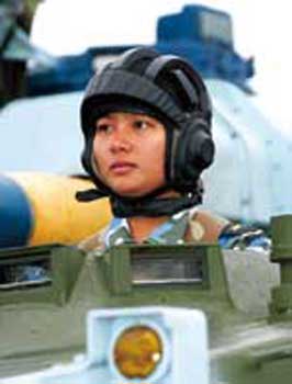 2007年1 月,裝甲戰(zhàn)車(chē)駕駛考核在一個(gè)復(fù)雜山地如期舉行。文敏是參加考核的惟一女隊(duì)員。